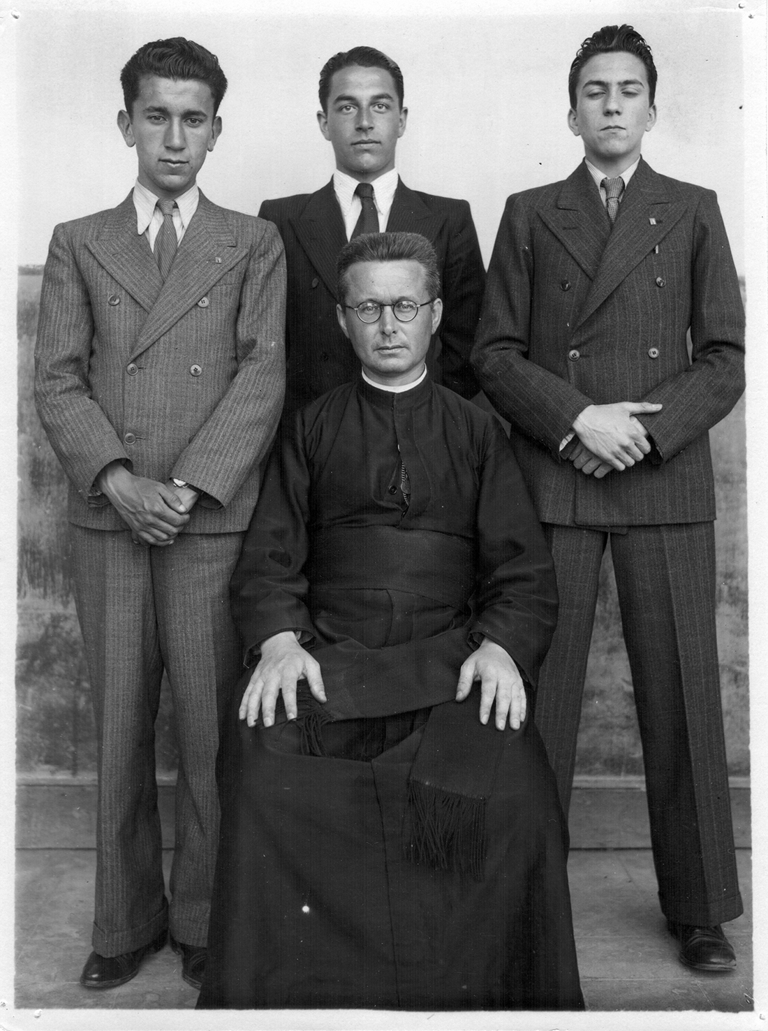 De pie a la izquierda, el padre Andrés Schmidt, alias "Trimotor“. A su lado, Pablo Gronkowski (de lentes), alias "Pablo Chico”. Abajo, sentado a la izquierda, Juan Schumacher, alias “el Zorro” y, a la derecha, Pablo Marqnardt, alias “Pablo Grande".
