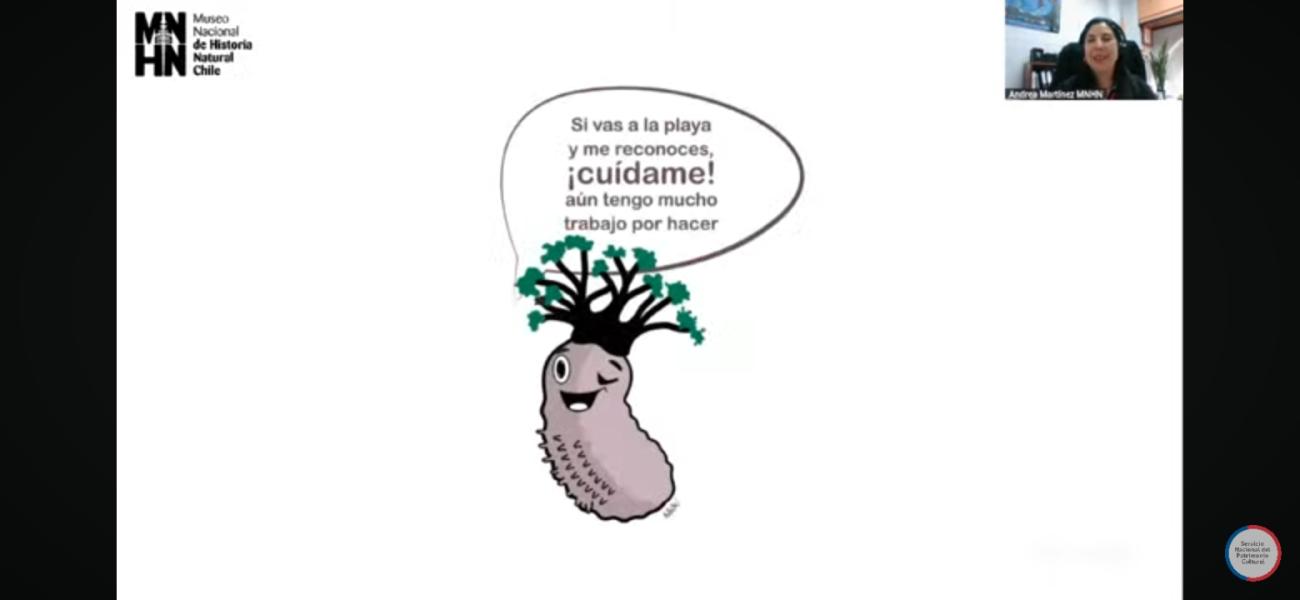 Presentaron: Gloria Rojas Villegas, Bióloga y Magíster en Ciencias, curadora e investigadora del Área Botánica y Herbario del Museo Nacional de Historia Natural, quién expuso sobre: “Cambio climático clave arbolado urbano”; Sergio Quiroz Jara, Profesor en Biología y Ciencias, Magister en Gestión Ambiental, investigador y director del Museo de Historia Natural de Valparaíso, habló sobe: “Colección de peces de agua dulce del Museo de Historia Natural de Valparaíso, un reservorio disponible para la investigación frente a las modificaciones hídricas provocadas por el cambio climático”; Andrea Paz Martínez Salinas, Bióloga marina y Magíster en Ciencias Biológicas, actual jefa del Área de Zoología de Invertebrado (AZI) y curadora de la colección de Equinodermos del Museo Nacional de Historia Natural, reflexionó sobre: “Pepinos de mar y la importancia de las colecciones biológicas para asegurar su conservación” y Francisco Urra Lagos, doctor en Biología Animal, investigador del Área de Entomología del Museo Nacional de Historia Natural, disertó sobre: “Microlepidópteros chilenos: contribuciones desde el MNHN”. Coordinará la mesa: Susana Herrera Rodríguez, antropóloga, Subdirectora de Investigación del Servicio Nacional del Patrimonio Cultural.