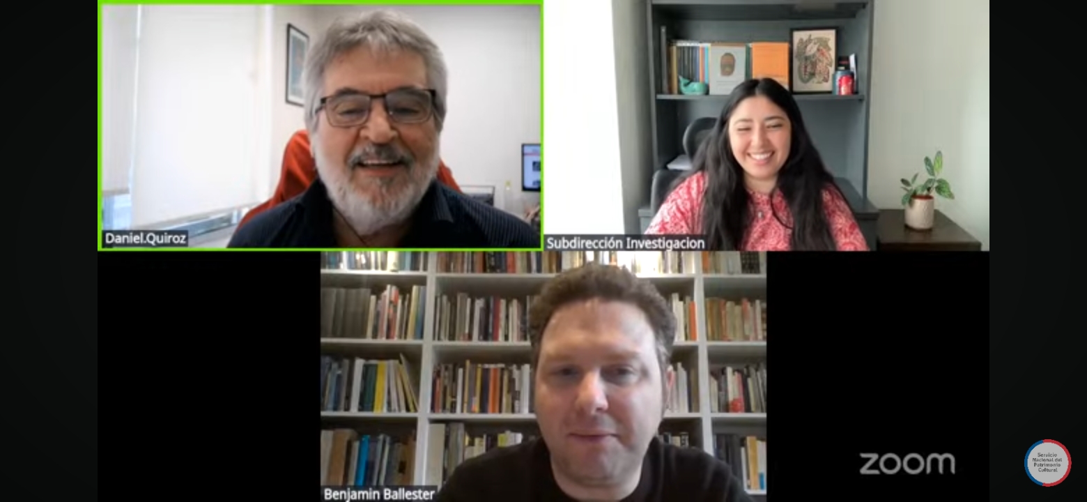 Antes de iniciar el diálogo sostenido entre Daniel Quiroz, investigador de la Subdirección de Investigación y Benjamín Ballester, Doctor en Arqueología por la Universidad Paris 1, Pantheón-Sorbonne, Camila Erazo, antropóloga de la Subdirección, dio palabras de bienvenida a este conversatorio.